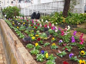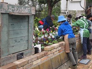 花苗と球根を植え、除草作業を終えたら、本日の活動は完了。色とりどりの花壇は日々の生活に元気を与えてくれます。チューリップなどの球根が花を咲かせ、さらに明るい花壇になる日が今から楽しみです。