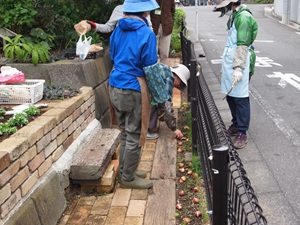 今年度も引き続き、この花壇の維持・整備活動を継続します。雑草を減らし、ゴミの投棄を防ぐ環境整備の一環として、2024年度に導入した花壇の道路側のレンガ敷きは、今年度さらに範囲を拡大しました。