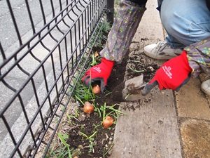 本日の活動は、秋冬のシーズンを彩る草花や、春に咲く花の球根の植え付けです。