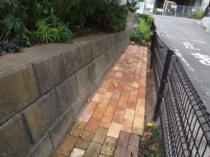 新たに敷かれたレンガには雑草の侵入を防ぐ役割も