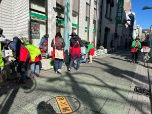 青く澄んだ冬空に冷たい北風が吹く12月中旬の金曜日、東急東横線・綱島駅から近い商店街で『みど*リンク』アクションが開催されました。